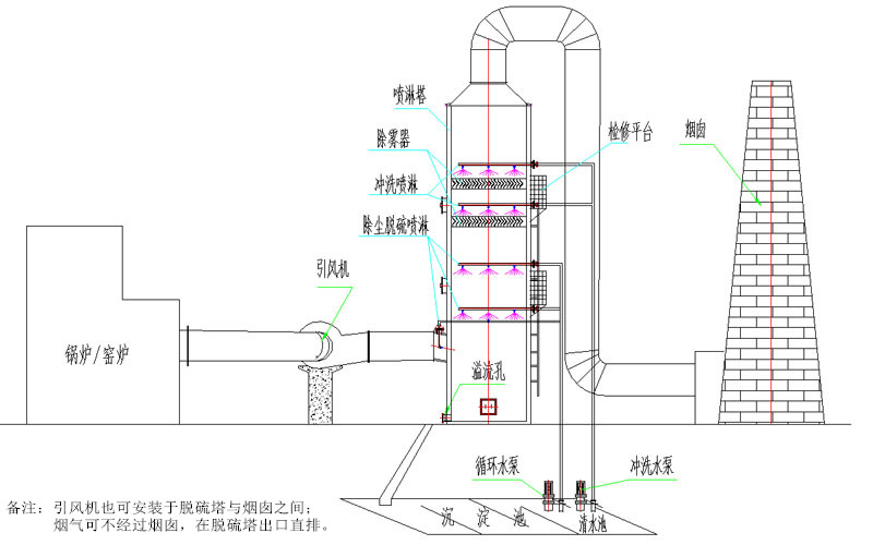 6、工艺简单,不易结垢,系统无脱硫废水的排放,不产生二次污染,比较适用于工业锅炉和炉窑配套使用。